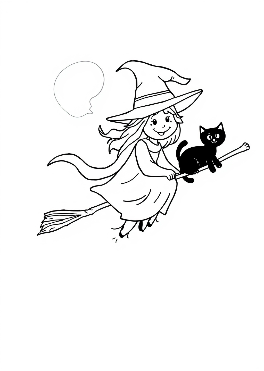 Ausmalbild: Hexe auf Besen