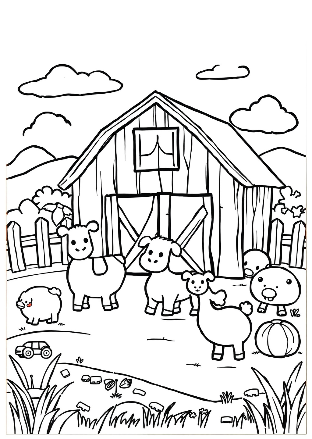 Ausmalbild: Bauernhof-Szene