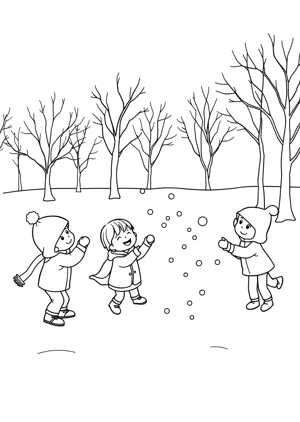Ausmalbild: Schneeballschlacht
